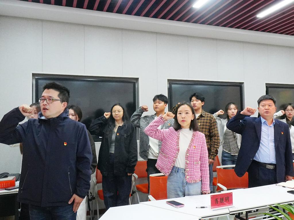 随后,公司党委统战委员段筱带领全体党员宣读入党誓词。党员们面对党旗齐声共诵、庄重宣誓。