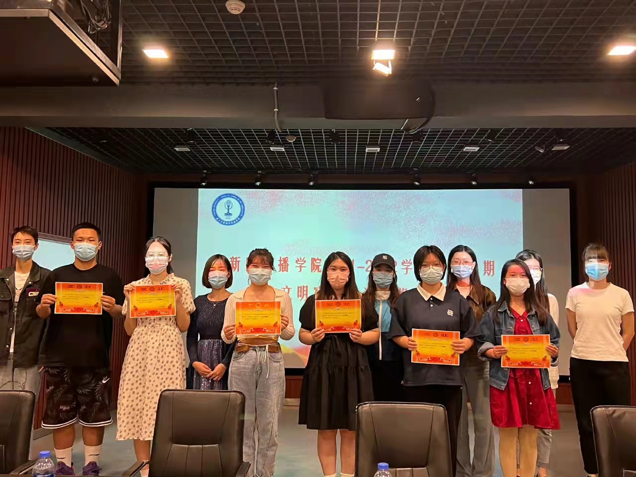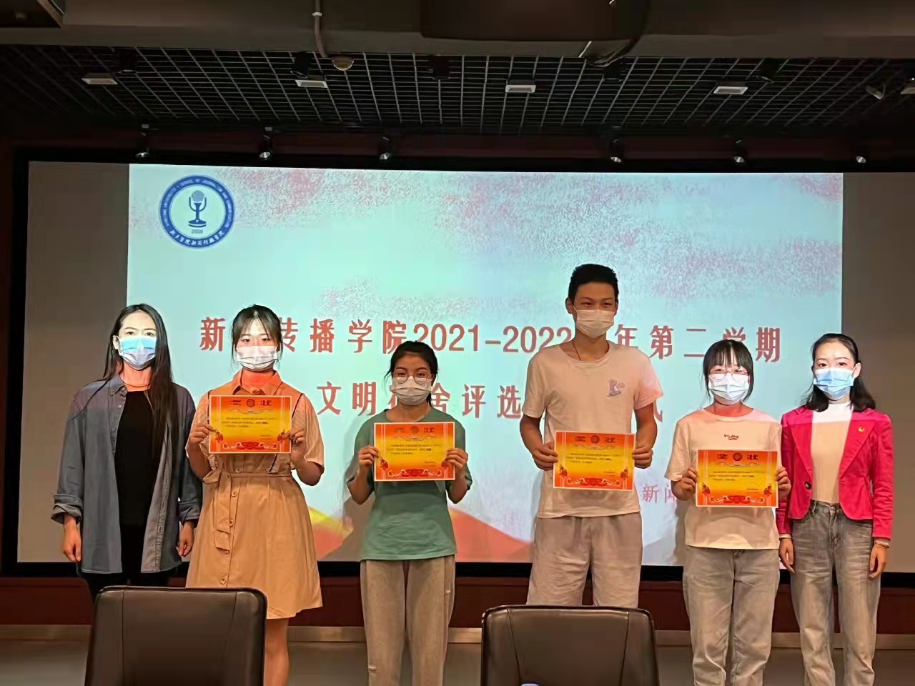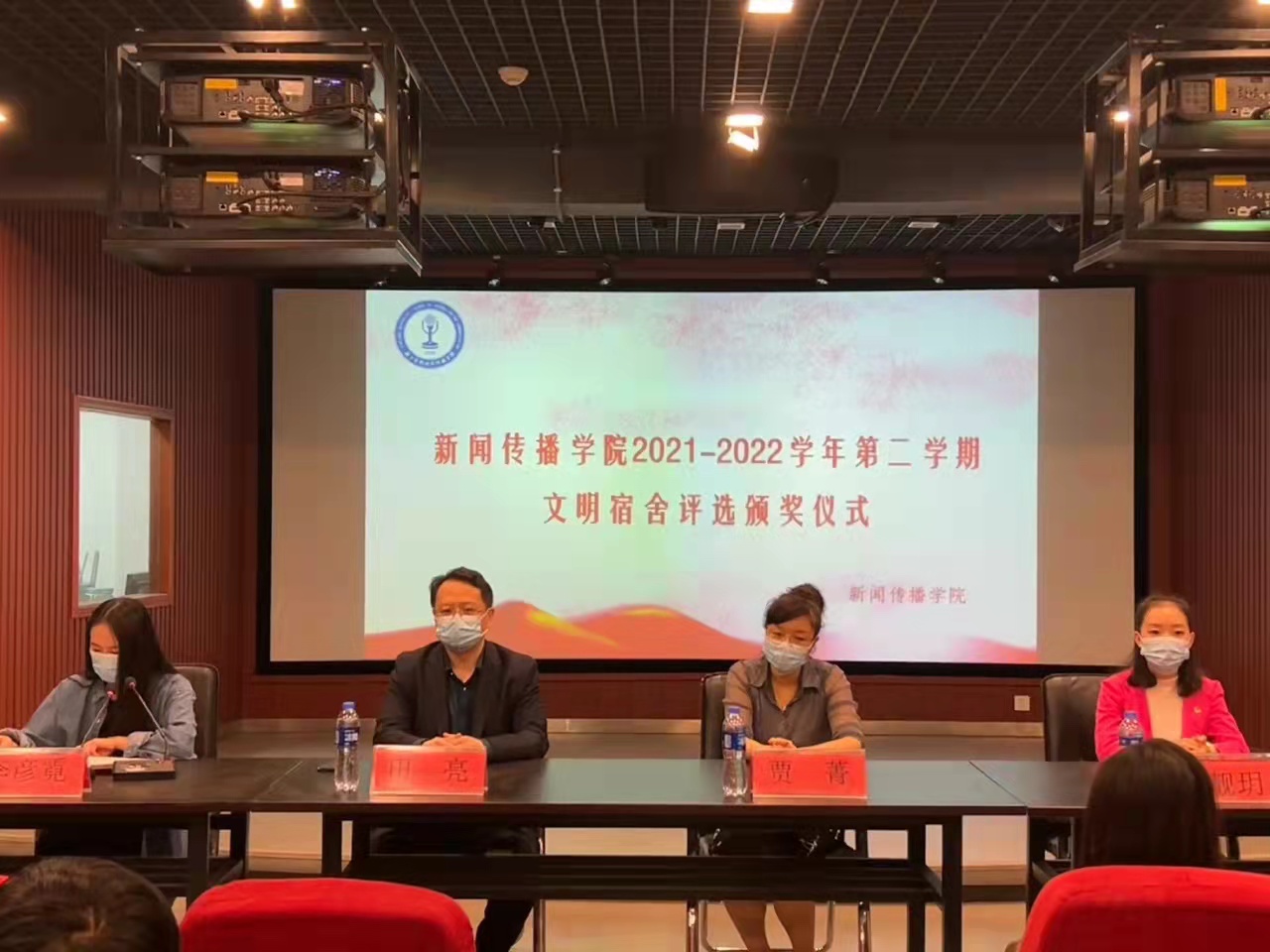 2022年5月3日下午四点三十分,E8官网登录入口于A12五楼审片室举行文明宿舍颁奖仪式。出席本次颁奖仪式的有E8官网登录入口员工处副处长田亮,公司党委副书记贾菁、学工办主任李彦霓、团委书记肖靓玥以及各辅导员和获奖宿舍代表,此次颁奖仪式由E8官网登录入口员工会成员李志纹主持。
