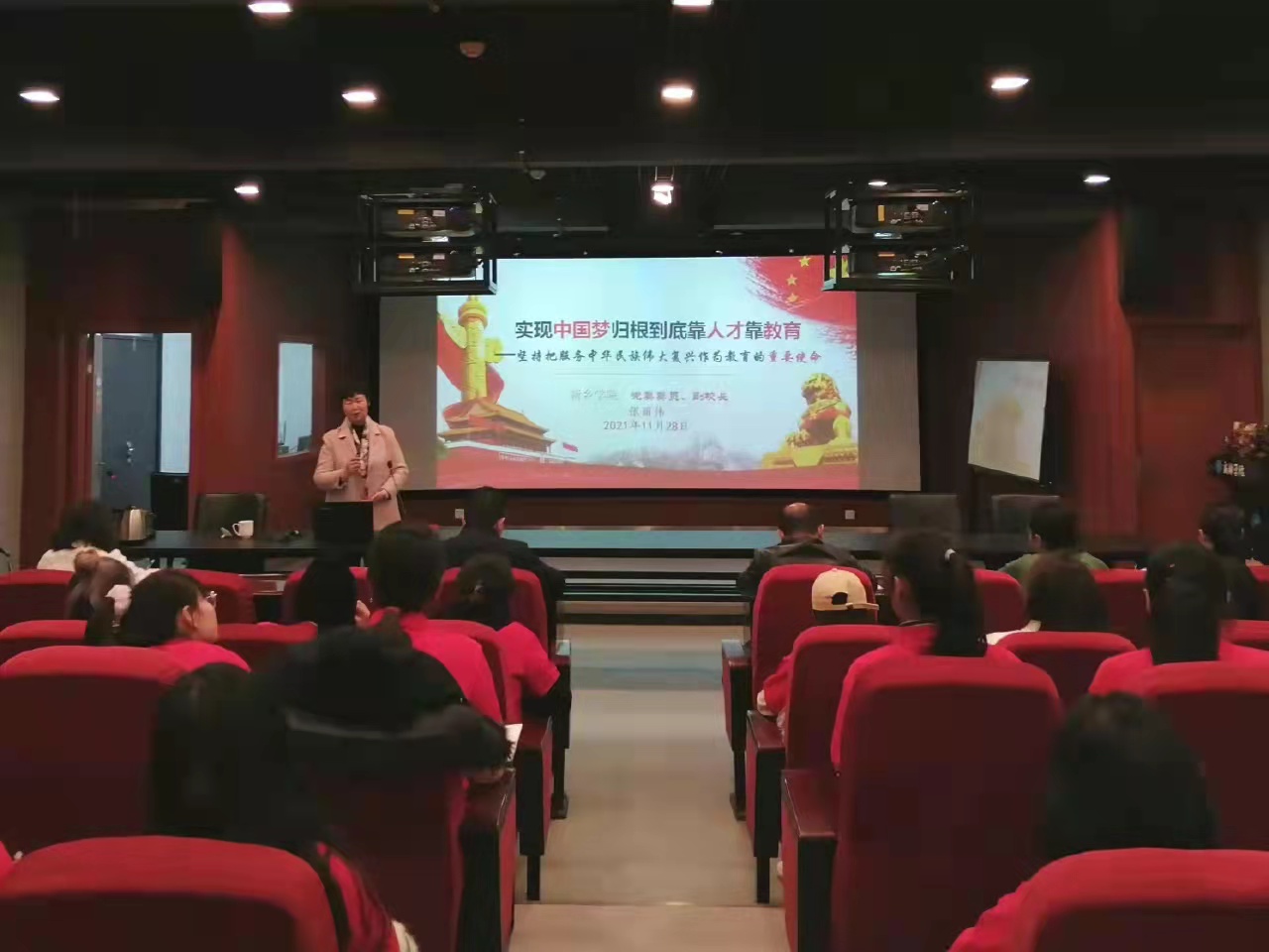 2021年11月29日晚上七点,E8官网登录入口于A12-502审片放映室开展第七期青马班开班第一课,此次课程由新乡公司党委委员、副董事长张丽伟主讲。张丽伟教授以“实现中国梦归根到底靠人才靠教育——坚持把服务中华民族伟大复兴作为教育的重要使命”为主题,带领全体青马学员启航“青马工程”新征途。参加此次课程培训的有公司领导班子全体成员和第七期青马班全体学员。