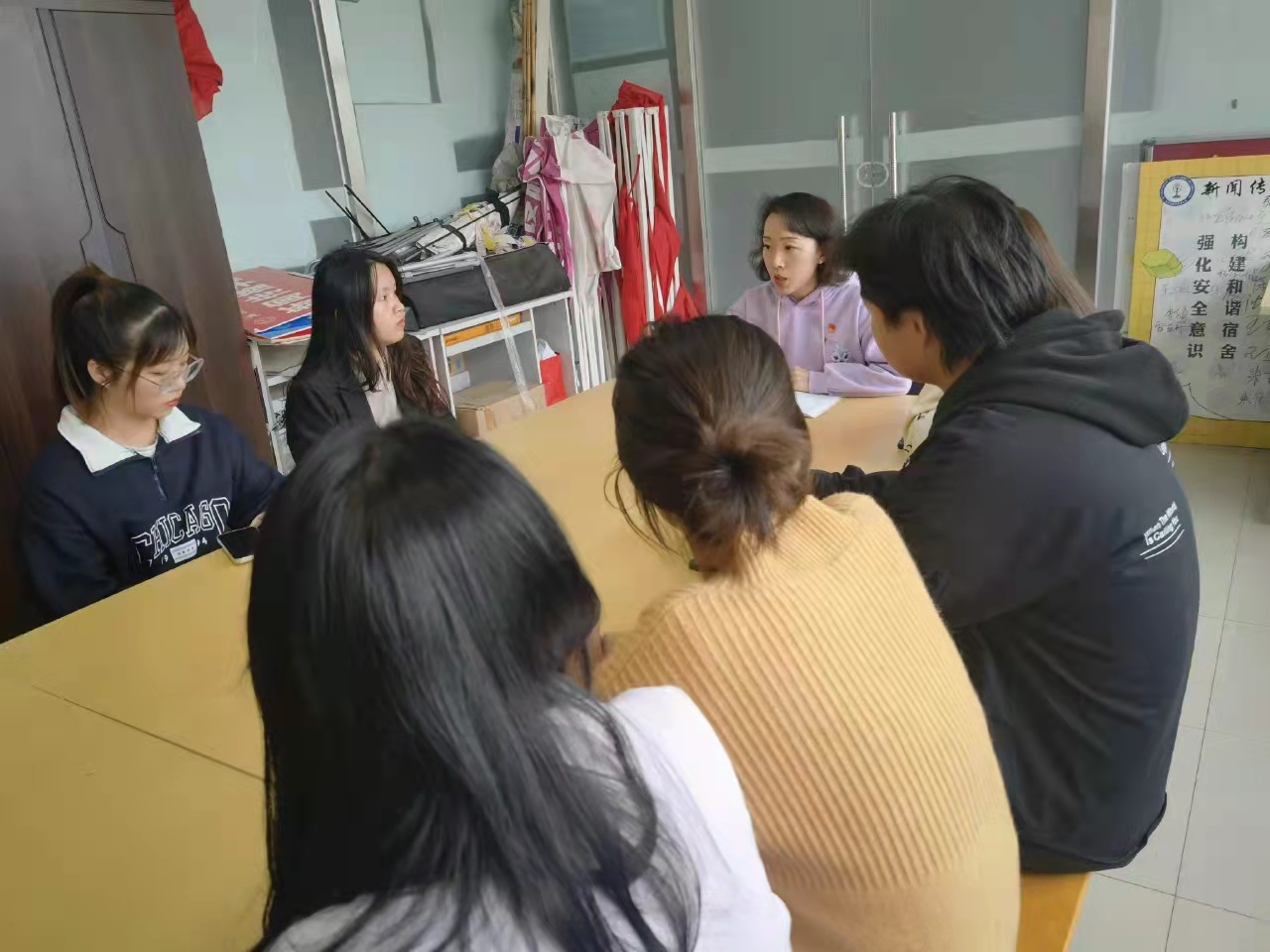 2021年10月27日下午4点10分,E8官网登录入口团委书记肖靓玥在A14五楼玻璃房对E8官网登录入口各社团进行系统性工作指导,要求各社团做好学期初的工作部署,规划好本学期的社团活动。