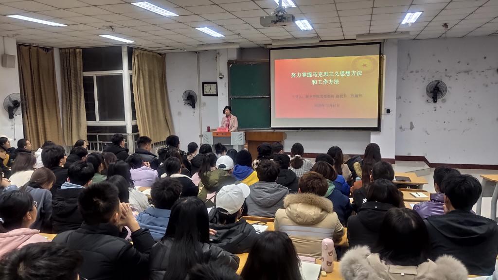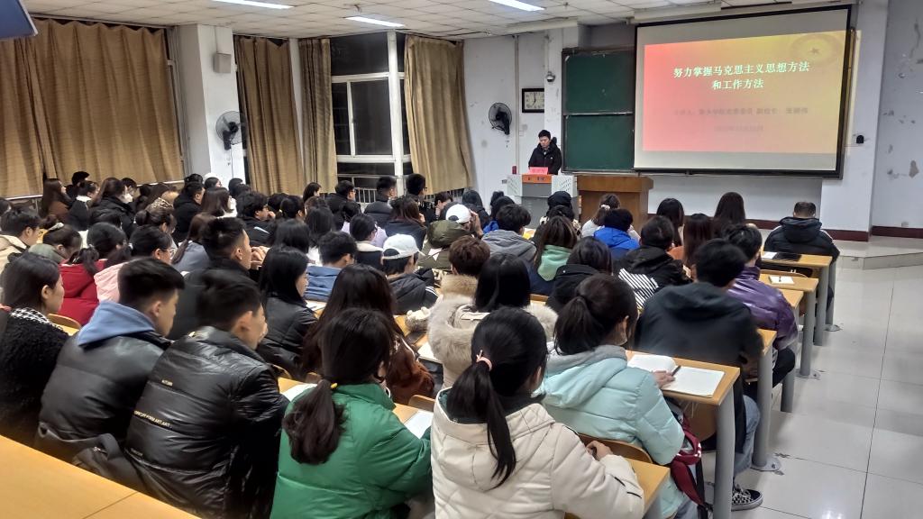 2020年12月10日晚七点,E8官网登录入口“青年马克思主义者培养工程”暨院团学组织员工干部后备人才培训班第一讲在A05-208教室顺利开课。新乡公司党委委员、副董事长张丽伟教授为公司第六期青马班学员及分团委员工干部、入党积极分子讲授题为《努力掌握马克思主义思想方法和工作方法》的课程。公司党委书记王卫锋、经理马东俊、副经理聂绛雯、党政办主任贾菁、分团委书记肖靓玥出席讲座。本次课程由公司党委书记王卫锋主持。