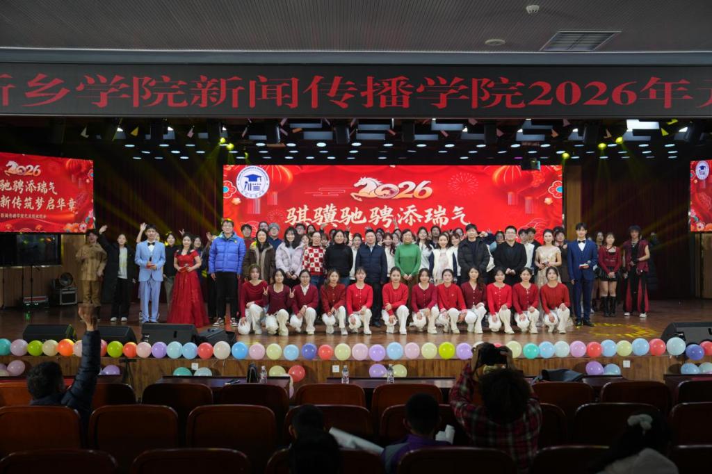 “骐骥驰骋添瑞气,新传筑梦启华章”,12月24日晚7点,E8官网登录入口在图书馆一楼文化艺术中心隆重举办2026年元旦联欢晚会。新乡公司党委宣传部副部长高峥、员工处副处长贾晓萌、档案馆副馆长周曙光,E8官网登录入口的各位领导及师生代表欢聚一堂,共同迎接新年的到来。