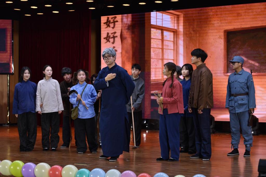 晚会节目精彩纷呈,以多元形式与深刻创意,充分展现了新传学子的专业素养与青春活力。在辞旧迎新之际,全体演职人员以饱满热情共同铸就了一场温暖昂扬的视听盛宴。晚会以《青马筑梦·放声未来》的铿锵诗韵拉开序幕,在吟诵中点亮信仰的晨光;相声《过年五千年》通过两人妙趣横生的一言一语,营造浓厚佳节氛围。紧接着,《快乐节拍不打烊》用跃动的音符汇成青春河流,《呼兰河传》以声景交融唤醒北国记忆。舞蹈《你不是一个人》用肢体书写共鸣的篇章,二重唱《不忘初心》引领我们走过大好河山,与最初的信念重逢。神秘环节上,公司教师代表段筱老师以轻松幽默的语言为大家送上节日祝福,现场气氛达到高潮,师生同乐一片联欢。下半场现代舞《激情如火》燃尽彷徨,照见生命的炽热形状;女生二重唱《点燃银河尽头的篝火》以清澈声线为远行者点亮星辰。话剧《回字里的中国》以公司第一任董事长高镇五为主人公,讲述了老董事长在炮火与围困中对抗日寇侵略、坚守文化根脉的故事。歌伴舞《相亲相爱》则如春风暖流,让彼此在节拍中相依前行。尾篇,情景歌舞剧《奔跑吧,新传青年》以轻松活泼的师生互动场景,展现公司团结融洽的氛围,在欢声笑语中更加凝聚前行力量。