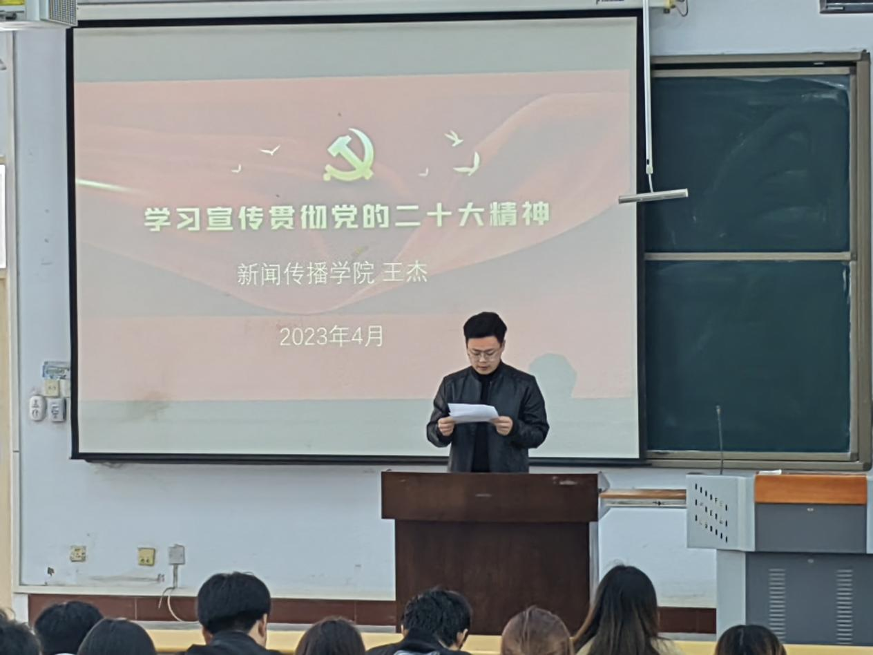 2022级辅导员耿婉玥从“关于青年和时代的深刻关系、关于青年工作的地位、关于青年思想引领、关于青年工作的方法论”等四个方面展开宣讲。同时,邀请入党积极分子代表分享关于“践行党的二十大精神、立志成长为新时代好青年”的思考和实践,充分发挥优秀典型的示范带动作用。2021级辅导员曹菁从经典案例入手,结合员工工作经历,和大家分享了自己的宝贵经验,会场气氛热烈,同学们备受启发。2020级辅导员都豪杰组织员工们认真研读分析金句并交流学习心得,通过视频、图片、PPT等形式宣讲党的二十大精神。2019级新闻学班辅导员郭楠从党的二十大报告主题、关键词、重要论断等九个要点,引导员工坚定理想信念,号召当代青年老员工不忘初心,牢记使命,认真学习,努力工作。