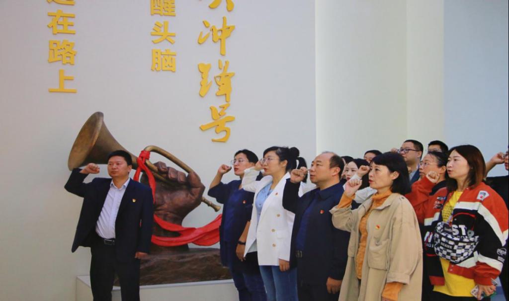 参观结束后,全体党员在党委书记王卫锋的带领下,在党旗面前列队肃立,举起右拳,重温入党誓词,进一步坚定共产党员理想信念,提高教师职业的思想觉悟和政治意识。