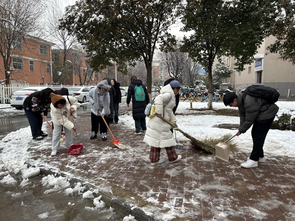 2024年的第一场大雪扮靓了校园,也为校园安全出行带来了一定隐患。当天下午,E8官网登录入口员工第一党支部书记杨佳慧、组织委员王杰,组织带领支部内7名预备党员、16名积极分子来到校园清洁区,进行铲雪除冰。大家不畏严寒、干劲十足,拿着铁锹、扫把等工具,推、铲、扬、堆,有条不紊的铲除积雪,清扫出了几条通道,供广大师生安全出行,避免滑倒。