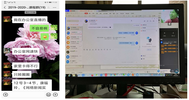创造条件,守土担责的康福玲。康福玲同志是新闻教研室主任,是一名具有30多年教龄的老教师。在教学中,她不耻下问,不断学习网络教学的新知识、新技术,时刻追踪网络教学前沿,熟悉各种教学平台和资源,寻找适合课程的资源,不断补充完善课程内容,丰富课堂教学。她购买了与课程相关的课程参考书,认真备课,为网络教学做准备。又和上同一门课的李宝忠老师商议课程的大纲与教学内容,安排在网络上可操作性的实践环节。为了做好网络直播课程,联系新乡日报老师借来设备。家里网速慢,又跑到办公室反复调试到晚上十点半,克服困难、用尽心思准时在办公室进行了直播,受到员工的好评。并根据员工收看直播的数据,督促因生病或网络原因没有准时收看的员工收看回放,并将教学资源上传到学习通,让员工学习参考,体现了一位老教师兢兢业业,不断进取的精神和守土担责的责任担当。