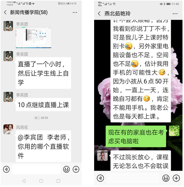 耐心解疑,热心释惑的孙桂杰、李宾团。孙桂杰同志是新媒体教研室的教研室主任,李宾团同志是新闻教研室的一名普通教师。两位教师擅长网课制作和直播,在公司发出延期开学通知后,两位老师就先行学习相关制作速课和直播的相关流程和知识,并开掘相关教学资源平台,热心分享给全院老师,热情接受大家咨询,对于老师不懂的技术、操作等问题,两位老师耐心解答,给老师们提供建网络课程的建议和方法,充分发挥了先会者帮助后学者的互助精神,使全院上下团结一心,共同提高网络教学能力。