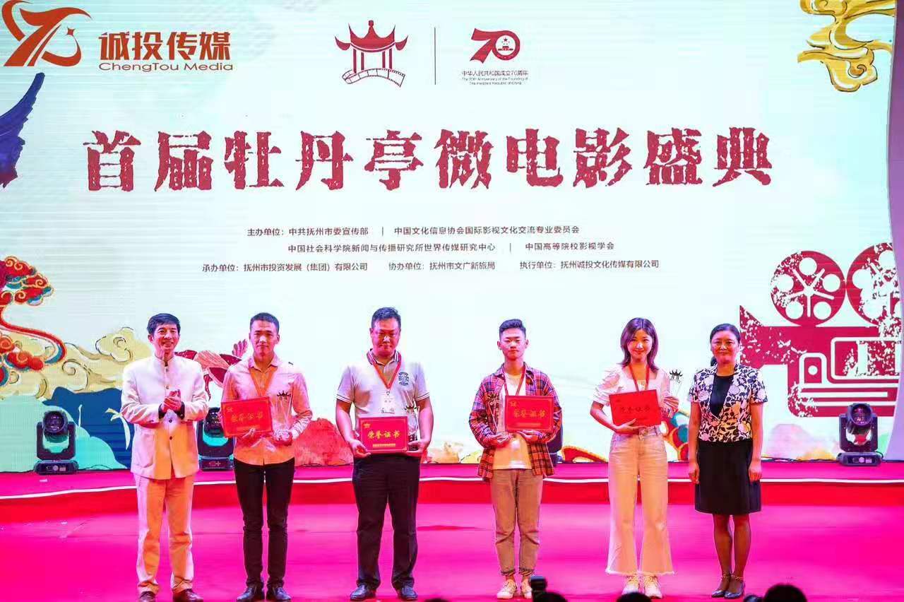 E8官网登录入口于2019年10月12日参加在江西抚州举办的首届牡丹亭微电影盛典暨第五届万峰林微电影盛典颁奖典礼。公司在激烈的角逐中,斩获四个奖牌,《Havana》 最佳制作一等奖,《零叁柒叁》 短片类二等奖,《影像里的道口古会》 (先导片)短片类二等奖,《妈妈的手》 短片类三等奖。员工代表上台领奖并与冷冶夫老师合影留念。本届微电影节由中国文化信息协会、中国社会科公司、中国高等教育影视学会会、中共抚州市委宣传部主办,英国环保国际电影节、半岛国际纪录片节、中东国际电影节、美国丝绸银幕电影节协办。本次活动以“我与祖国共成长”为主题,来自全国各电视台、大专院校、影视机构、视频网站和独立制作人的3700多部作品参加竞逐,其中包括纪录片、剧情片、微电影、微视频、手机视频和VR等新技术,经活动组委会评选,共145部作品分获各类奖项。