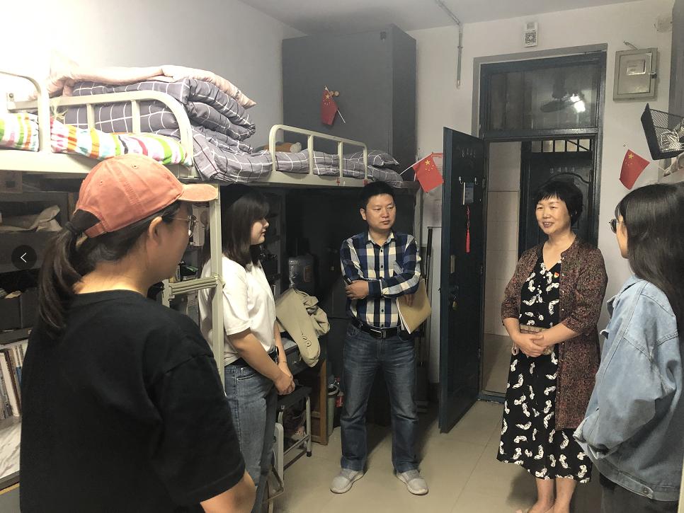 祁经理对创建温馨、整洁的宿舍环境等方面给予了亲切的建议和指导,要求同学们以实而又实、细而又细的态度,做好文明宿舍创建工作,同时还强调同学们要学会守正创新,善于用积极的心态发现“美”传播“美”。王书记对安全用电、杜绝使用大功率电器、禁止私拉电线等宿舍安全方面提出具体要求。其他分组的辅导员老师也分别针对宿舍消防安全、用电安全、美丽宿舍创建等方面进行了检查指导。