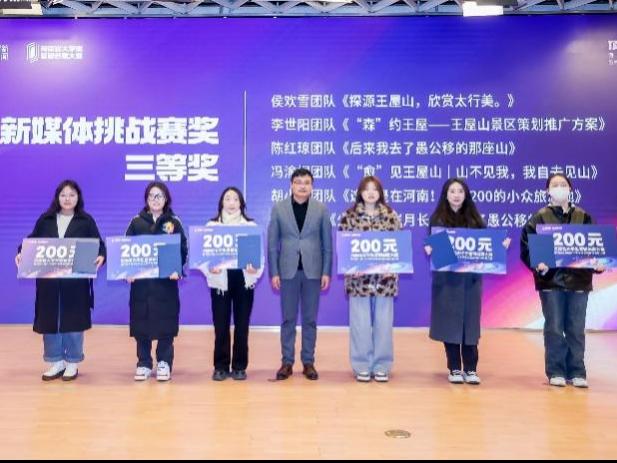 此次比赛以济源王屋山、五龙口两大景区为创作对象,共设置策划案奖、设计案奖、最具人气明星奖、新媒体挑战赛奖、slogan创意案奖5项大奖。颁奖嘉宾为获奖同学颁发证书和奖品,现场气氛非常热烈,台下一波接一波的掌声和此起彼伏的祝贺声交织相融。公司员工侯欢雪、金艳姿等作为员工代表上台领奖。侯欢雪同学表示,自己在比赛作品的创作过程中不仅仅将课堂上的框架知识和学科理论运用到了实际,更大的收获和感触是自身的实操能力得到了极大的锻炼与提升。
