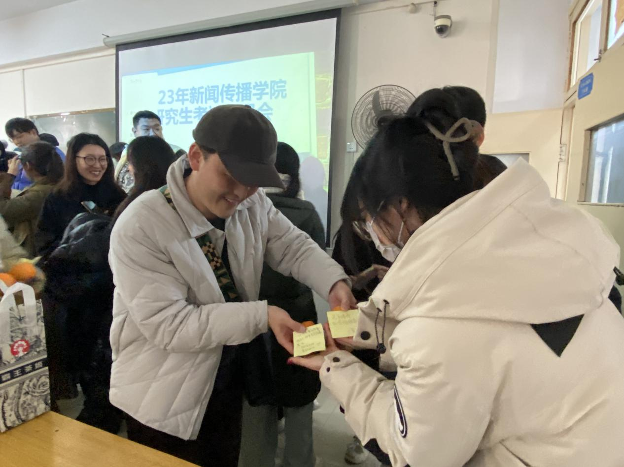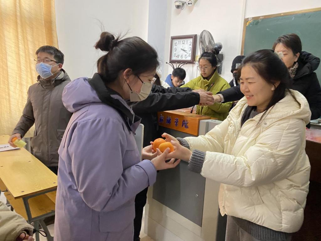 会后,老师们细心准备了寓意心想事成的橙子和考研文具,送给每一位考研学子,鼓舞士气、传递祝福。同学们纷纷表示,要奋力备战、认真考试,争取发挥最好的水平。