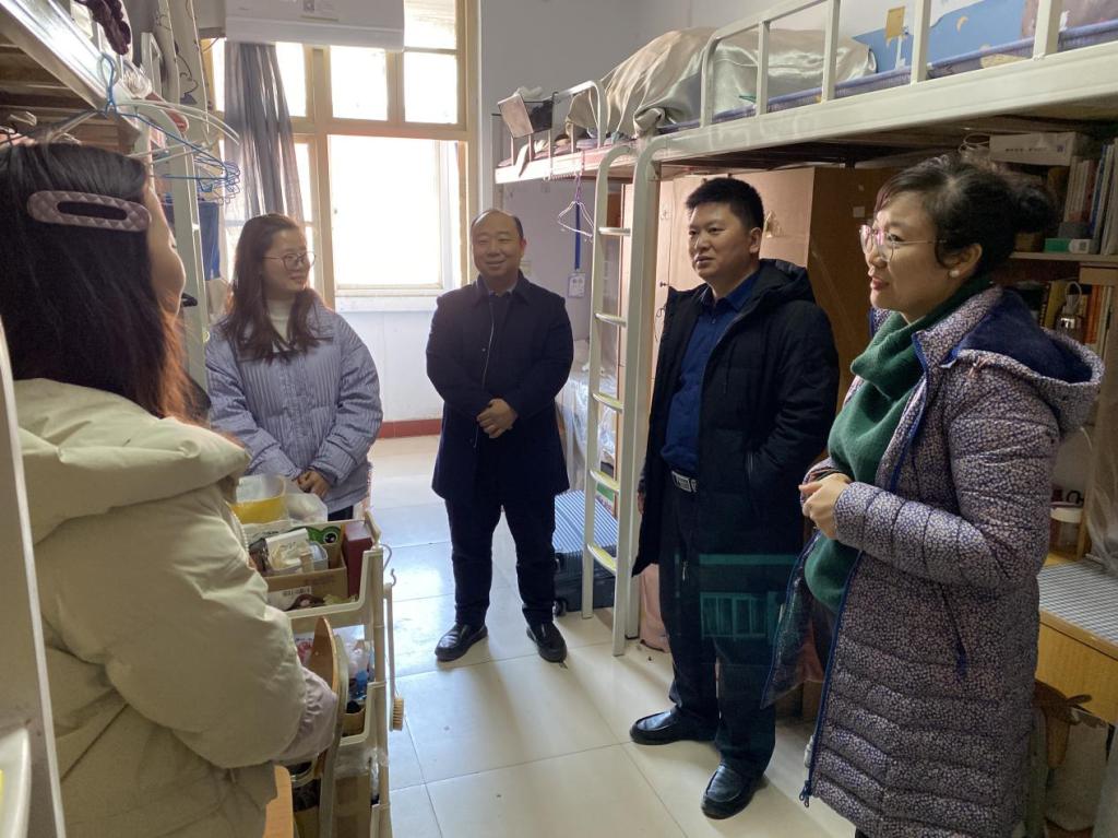 在校园东生活区E02、E03宿舍楼,公司领导一行走进员工宿舍,与同学们亲切交谈,深入了解同学们在家过春节的习俗、返校经历,近期的思想动态、生活状态和学习进展,关注同学们的困难和需求;体验了宿舍暖气片的温度,询问了宿舍空调的使用情况,特别强调宿舍水、电安全的重要性,提醒同学们要及时排查消防安全隐患,强化网络安全意识,确保校园生活的安全和舒适;并嘱托他们尽快调整到最优状态,保持良好的作息习惯,在新的学期里积极向上,刻苦学习,奋力拼搏,为实现自己的人生目标奠定坚实基础。