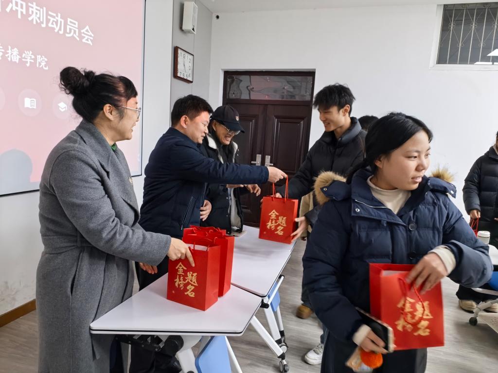 动员会最后,由院领导为同学们发放公司老师特别制作的“加油大礼包”。与会员工纷纷领取,没到的员工也在会后由老师和同学逐一送到手上。2022级新闻学专业同学表示:“礼包里的‘心想事橙’等小心思让我特别感动,老师的用心守护是我们前行的底气。”