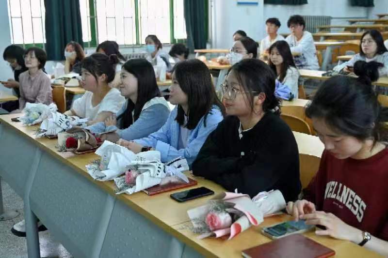 首先,武晋原老师介绍了今年新闻学专业的考研上岸情况,接着学弟学妹们为考研上岸的同学们送上了鲜花和笔记本来表示祝福。考研成功的同学们也对自己的考研经验进行了分享: