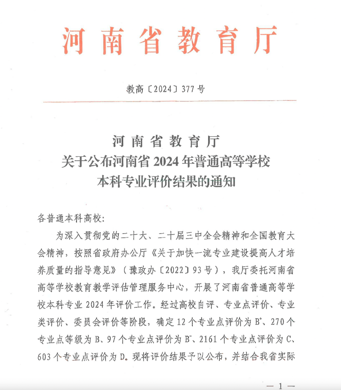 公司广播电视编导专业获河南省2024本科专业评价B-等次