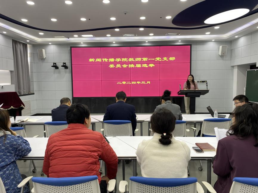 按照会议流程,在确认实到会有选举权的党员数超过应到会人数的五分之四时,大会宣布会议有效。首先由支部书记贾菁代表上一届支委会作工作报告,全面回顾了过去三年党支部的工作情况。接着统战委员王楠向大会报告换届选举筹备工作并介绍候选人基本信息,大会通过选举办法和监票、计票等工作人员。